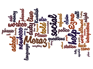 A refugee's pleas for aid go unanswered by the system. Without an interpreter they would not even have been understood. |