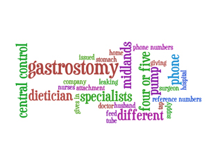 When Monica's husband John has a gastrostomy she is unexpectedly faced with having to deal with a number of different specialists for different parts of the pump ... simply in order to feed him. |