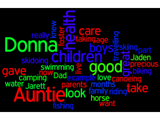 Della pays tribute to her family, looking back with gratitude to her adoptive parents and forward to her two young sons, gently reminding them of the importance of a healthy lifestyle so that they will grown up strong and well. |