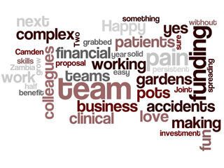 | Growing up in Zambia, Natasha had plenty of opportunities to experiment with growing and making things. So when faced with the challenge of working with patients with complex pain, she had the courage and confidence to find and mix the right ingredients - people, skills, protocols and funding - to result in a successful approach to treating patients with long-term, complex pain. | |